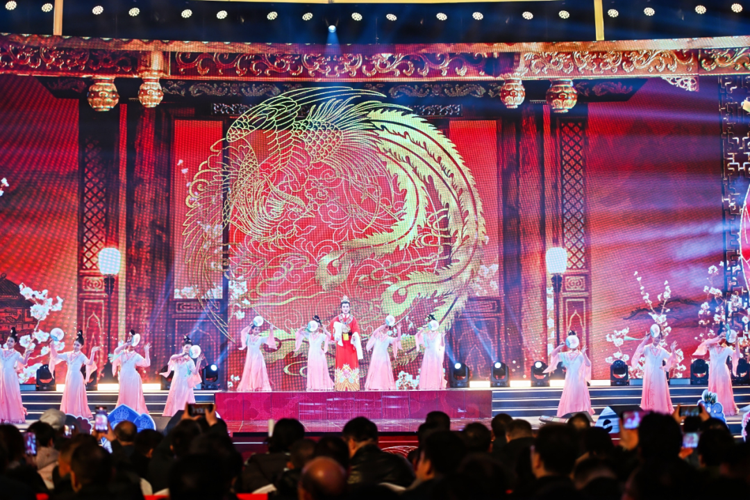緊接著,《與君同唱》篇章以一段特別的視頻聯(lián)結(jié)起越劇人氣榜樣陳麗君,并引發(fā)全場(chǎng)觀眾齊唱《何文秀·桑園訪妻》,氣氛溫馨熱烈。壓軸的《戲韻浙里》篇章突破劇種邊界,婺劇、紹劇、甬劇、臺(tái)州亂彈與越劇的經(jīng)典名段依次唱響,五位劇種名家手執(zhí)嵊州非遺竹編“戲曲百花籃”點(diǎn)亮舞臺(tái),生動(dòng)呈現(xiàn)了浙江戲曲“百花嵊放”、共生共榮的繁榮生態(tài)。