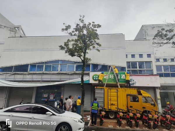 PART.1臺(tái)風(fēng)“格美”受今年第3號(hào)臺(tái)風(fēng)“格美”外圍環(huán)流影響,我市近日陰有陣雨,部分地區(qū)有大到暴雨,并伴有陣風(fēng)。為防止在陣雨和強(qiáng)風(fēng)的影響下,本就存在破損的戶外廣告成為市民“頭頂?shù)碾[患”,嵊州市綜合行政