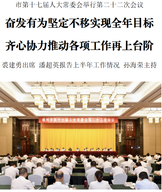 9月18日下午,嵊州市第十七屆人大常委會舉行第二十二次會議,聽取2024年上半年市政府、市法院、市檢察院工作情況報告。市委書記裘建勇出席會議并講話,市委副書記、市長潘超英報告工作情況。會議由市人大常委