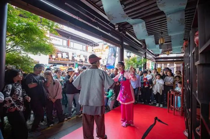 今年“五一”假期,嵊州越劇小鎮(zhèn)免門(mén)票開(kāi)放,連番上演的沉浸式越劇、水上越劇快閃、越歌越舞、相親秀等創(chuàng)意表演活動(dòng),吸引了眾多游客。今日出版的《浙江日?qǐng)?bào)》頭版對(duì)此進(jìn)行報(bào)道?!拔逡弧奔倨?,嵊州越劇小鎮(zhèn)游客中心
