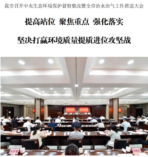8月29日上午,我市召開中央生態(tài)環(huán)境保護(hù)督察整改暨全市治水治氣工作推進(jìn)大會。市委書記裘建勇強(qiáng)調(diào),要深入學(xué)習(xí)貫徹習(xí)近平生態(tài)文明思想,嚴(yán)格落實(shí)央督反饋問題整改要求,進(jìn)一步提高思想認(rèn)識,強(qiáng)化工作協(xié)同,加大攻