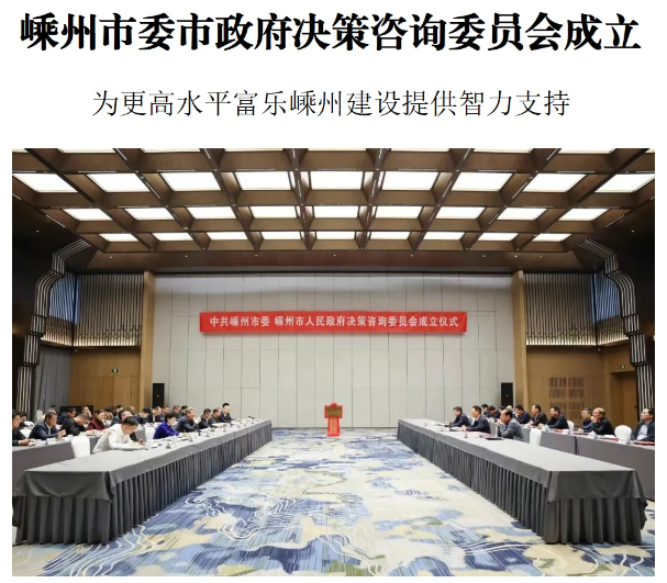 11月日上午,嵊州市委、市政府決策咨詢委員會成立,深入貫徹習近平總書記關于加強中國特色新型智庫建設的重要論述精神,全面落實省、紹興市有關決策咨詢工作要求,進一步打造具有嵊州特色的高水平新型智庫,為更高