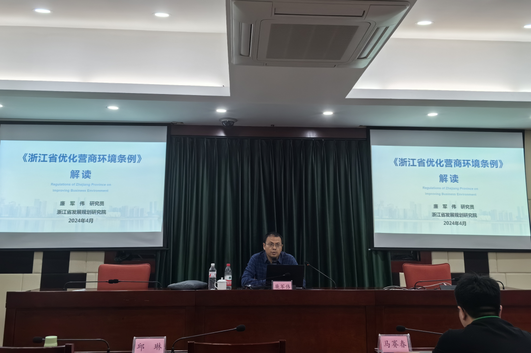 優(yōu)化營商環(huán)境提升綜合實力4月27日上午,實訓營邀請浙江省發(fā)展規(guī)劃研究院研究員廉軍偉解讀《浙江省優(yōu)化營商環(huán)境條例》,廉軍偉研究員從立法背景、立法過程、要點解讀、貫徹落實等四個方面對條例進行了詳細解讀,全