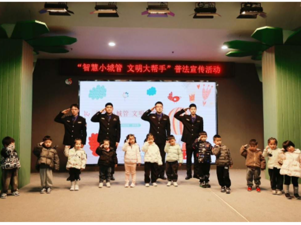 為持續(xù)深入推進(jìn)“憲法宣傳周”宣傳活動(dòng),12月4日,嵊州市綜合行政執(zhí)法局的青年干部們?yōu)獒又菔形鍚塾捉碳瘓F(tuán)中心園區(qū)的180名小朋友開展了一場“沉浸式”體驗(yàn)的普法小課堂。01“佩章儀式”樹立主人翁意識(shí)課堂是