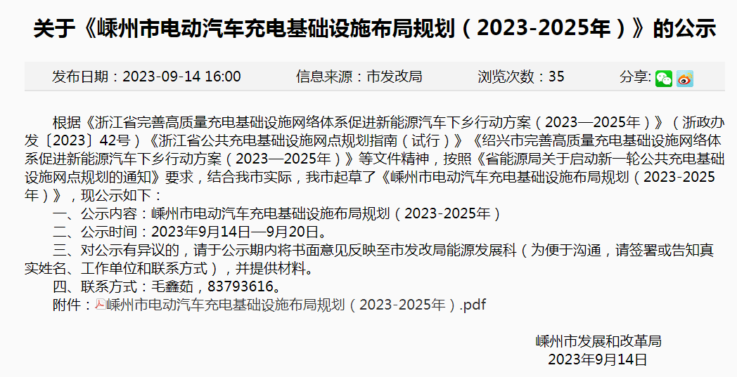 近日,嵊州市人民政府網(wǎng)發(fā)布了關于《嵊州市電動汽車充電基礎設施布局規(guī)劃(2023-2025年)》的公示具體來看↓↓↓規(guī)劃范圍及年限規(guī)劃范圍為嵊州市轄4個街道、10個鎮(zhèn)和1個鄉(xiāng),分別是:剡湖街道、三江街道