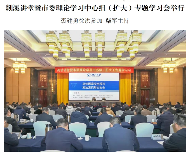 12月13日上午,剡溪講堂暨市委理論學(xué)習(xí)中心組(擴大)專題學(xué)習(xí)會舉行,邀請浙江大學(xué)公共管理學(xué)院教授謝貴平作總體國家安全觀專題授課。裘建勇、徐洪等副市級以上領(lǐng)導(dǎo)參加。市委副書記、社會工作部部長、政法委書