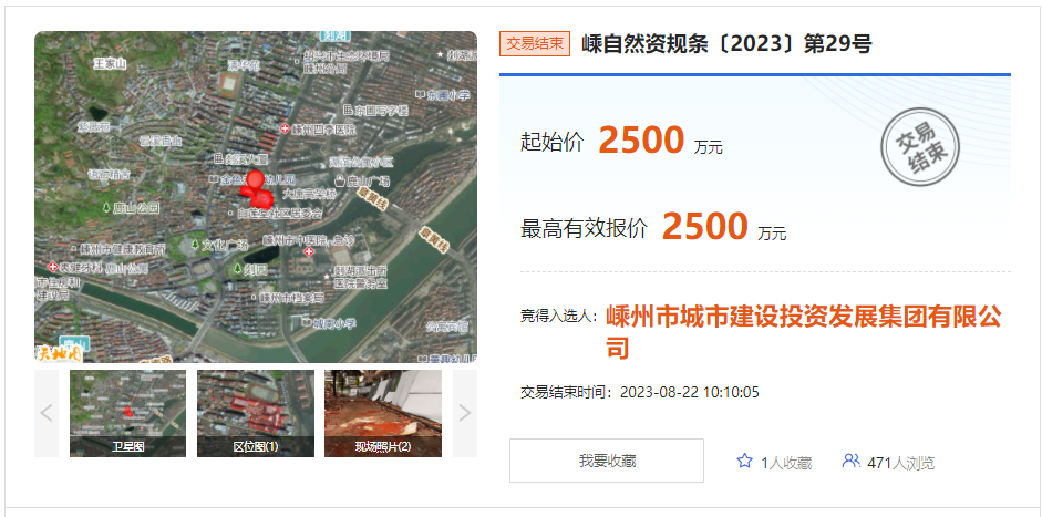 今天(10月17日),嵊州市自然資源和規(guī)劃局以網(wǎng)上拍賣方式公開(kāi)出讓位于嵊州市剡湖街道北直街東側(cè)地塊的國(guó)有建設(shè)用地使用權(quán)。最終地塊被嵊州開(kāi)投藍(lán)城城市開(kāi)發(fā)有限公司以起拍價(jià)54470萬(wàn)元摘得,溢價(jià)率0.0% 。