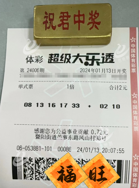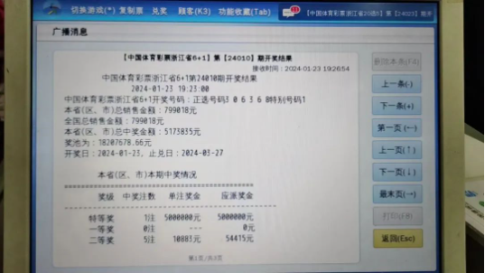 500萬?浙江體彩6+1特等獎喜降嵊州?新年的第一期,好運齊雙降,近日,浙江6加1第24010期開獎,我市購彩者迎來了好運狂歡!位于嵊州市甘霖鎮(zhèn)嵊長路北23號的3306054007銷售點中出1注特等獎