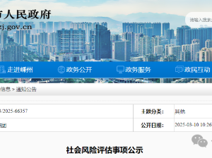 社會風(fēng)險評估事項公示近日,紹興嵊州市人民政府發(fā)布一則《社會風(fēng)險評估事項公示》。社會風(fēng)險評估事項公示依據(jù)《關(guān)于印發(fā)嵊州市重大決策社會風(fēng)險評估實施細(xì)則的通知》(嵊市