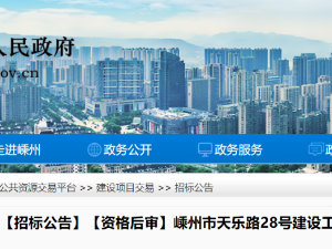 嵊州市天樂路28號建設工程施工招標公告1.招標條件嵊州市天樂路28號建設工程已由嵊州市發(fā)展和改革局以嵊發(fā)改中投【2024】191號批準建設,建設資金來自自籌資