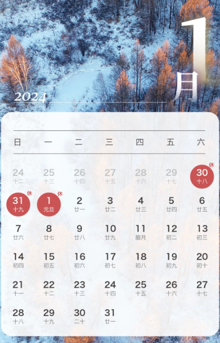 國(guó)務(wù)院辦公廳關(guān)于2024年部分節(jié)假日安排的通知各省、自治區(qū)、直轄市人民政府,國(guó)務(wù)院各部委、各直屬機(jī)構(gòu):經(jīng)國(guó)務(wù)院批準(zhǔn),現(xiàn)將2024年元旦、春節(jié)、清明節(jié)、勞動(dòng)節(jié)、端午節(jié)、中秋節(jié)和國(guó)慶節(jié)放假調(diào)休日期的具體安