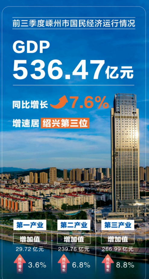 剛剛,前三季度嵊州市經(jīng)濟(jì)運(yùn)行情況公布。根據(jù)地區(qū)生產(chǎn)總值統(tǒng)一核算結(jié)果,前三季度全市生產(chǎn)總值536.47億元,按不變價(jià)格計(jì)算,同比增長(zhǎng)7.6%,增速居紹興第三位。前三季度嵊州市國(guó)民經(jīng)濟(jì)運(yùn)行情況嵊州市統(tǒng)計(jì)局