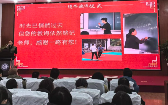 漫漫教育路回首皆芳華2月2日,嵊州市中等職業(yè)技術(shù)學(xué)校在教職工會(huì)議中舉行了“感謝一路有你”退休教師歡送儀式。一、介紹退休教師工作情況活動(dòng)中,校工會(huì)主席、副校長竺浩軍向全體與會(huì)人員介紹了三位退休教師在學(xué)校