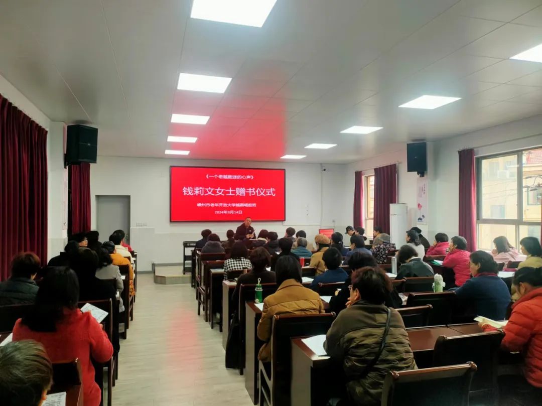 3月14日上午,一場(chǎng)特別的贈(zèng)書儀式在社區(qū)學(xué)院(老年開放大學(xué))舉行。學(xué)員錢莉文向70多名老年越劇學(xué)員捐贈(zèng)了《一個(gè)老越劇迷的心聲》一書。社區(qū)學(xué)院(老年開放大學(xué))裘副主任出席贈(zèng)書儀式并講話。 儀式