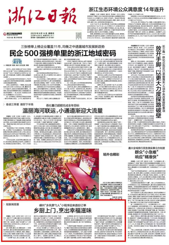 不久前,“鄉(xiāng)風掌勺人”小程序正式上線?,F(xiàn)在在紹興嵊州,小到在家請客,大到壽席、婚禮,消費者只需在手機上操作,就能點單星級鄉(xiāng)村廚師上門掌勺,一桌菜算上原材料、加工費從幾百元到千元左右,便捷享受“鄉(xiāng)里味”
