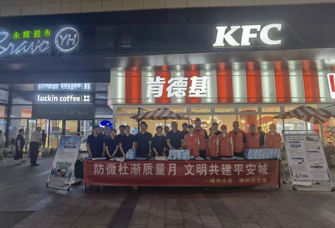 為深刻踐行安全生產(chǎn)理念,全力守護(hù)市民“腳下安全”,2025年9月24日晚,嵊州市水務(wù)集團(tuán)水務(wù)事業(yè)部在嵊州市和悅廣場(chǎng)成功組織開展以“平安嵊州”為主題,以“防微杜漸質(zhì)量月,文明共建平安城”為行動(dòng)標(biāo)語(yǔ)的夜間