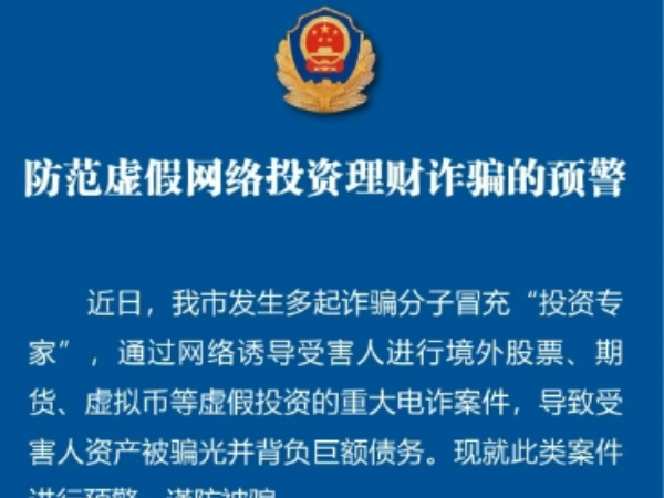 近日,杭州發(fā)生多起詐騙分子冒充“投資專家”通過網(wǎng)絡(luò)誘導(dǎo)受害人進(jìn)行境外股票、期貨、虛擬貨幣等虛假投資的重大電詐案件導(dǎo)致受害人資產(chǎn)被騙光并背負(fù)巨額債務(wù)對(duì)此杭州警方發(fā)布緊急提醒↓↓來源:平安鼎嵊州生活網(wǎng)友情