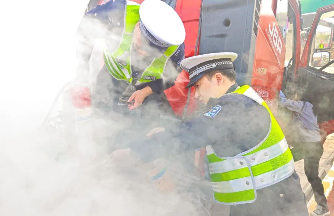 高速收費(fèi)口重型貨車濃煙滾滾警方聯(lián)動(dòng)多部門合力滅火十余分鐘保住一車貨物“前方貨車冒煙!快,拿滅火器!”近日G1522常臺(tái)高速嵊州出口紹興市公安局交通管理支隊(duì)高速二大隊(duì)民警陸鐵騎在日常巡查時(shí)發(fā)現(xiàn)一輛正駛出