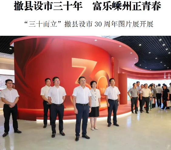 撤縣設(shè)市三十年,富樂嵊州正青春。8月30日上午,“三十而立”撤縣設(shè)市30周年圖片展在國(guó)際會(huì)展中心正式開展。市委書記裘建勇,市委副書記、市長(zhǎng)潘超英,市人大常委會(huì)主任徐洪,市政協(xié)主席柴理明等來到現(xiàn)場(chǎng),和廣