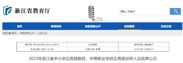 根據(jù)《浙江省教育廳辦公室浙江省人力資源和社會保障廳辦公室關(guān)于做好2023年中小學(xué)和中等職業(yè)學(xué)校教師正高級職務(wù)任職資格評審工作的通知》,經(jīng)個(gè)人申報(bào)、學(xué)校和市地推薦、專家評審,有402名教師通過中小學(xué)正高