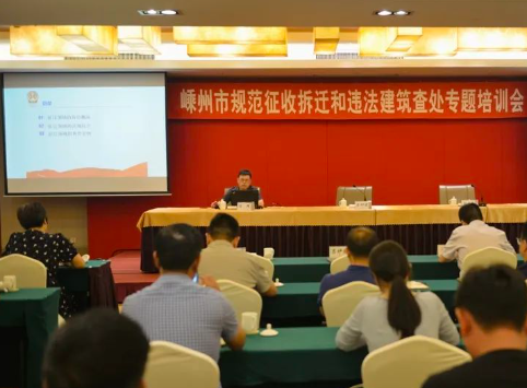 2024年7月16日下午,嵊州市司法局聯(lián)合嵊州市人民法院開展規(guī)范征收拆遷和違法建筑查處專題培訓。嵊州市業(yè)務相關的部門和單位、15個鄉(xiāng)鎮(zhèn)(街道)的分管負責人、科室負責人、法審員和法律顧問等共80余人參加