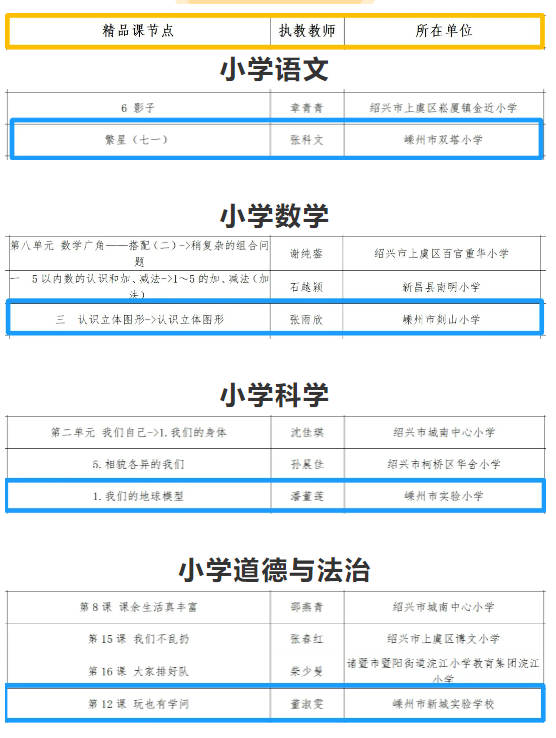 近日,省教育廳公布2024年“基礎(chǔ)教育精品課”遴選活動評選結(jié)果。其中,確定紹興60節(jié)課為省級學(xué)科課程類“基礎(chǔ)教育精品課”,16節(jié)課為省級實驗教學(xué)類“基礎(chǔ)教育精品課”。一起來看看嵊州上榜名單——學(xué)科課程