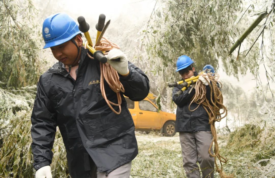 2月23日上午,國網(wǎng)嵊州市供電公司的搶修人員趕赴崇仁鎮(zhèn)白水墩村C臺,對因覆冰嚴(yán)重導(dǎo)致斷線的10千伏線路進(jìn)行緊急處理,用心守護(hù)山區(qū)百姓溫暖。受強(qiáng)冷空氣影響,我市于21日晚迎來2024年的第一場雪。部分山