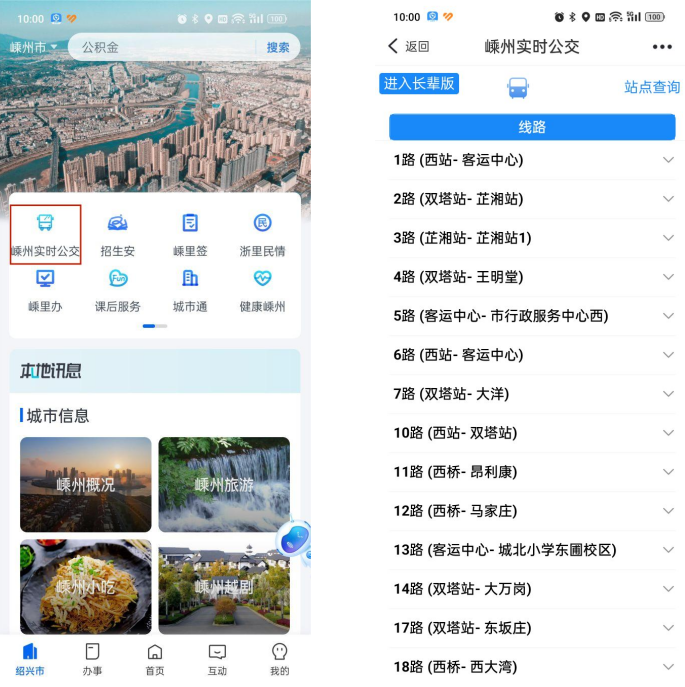 嵊州市民們注意!2024年1月10日,“浙里辦”嵊州市城市頻道上線嵊州實(shí)時(shí)公交,提供嵊州“實(shí)時(shí)公交”查詢服務(wù)。具體操作手冊(cè)如下:1.打開(kāi)“浙里辦”APP首頁(yè),點(diǎn)擊城市,默認(rèn)進(jìn)入站點(diǎn)為:嵊州市,點(diǎn)擊首頁(yè)