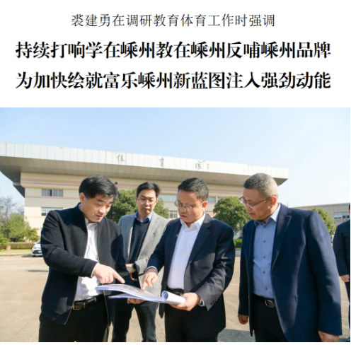 3月18日上午,市委書記裘建勇就教育體育工作進行專題調(diào)研。他強調(diào),要深入學(xué)習(xí)貫徹習(xí)近平總書記關(guān)于教育的重要論述,始終堅持把教育發(fā)展擺在重要位置,持續(xù)打響“學(xué)在嵊州、教在嵊州、反哺嵊州”品牌,用心用情辦