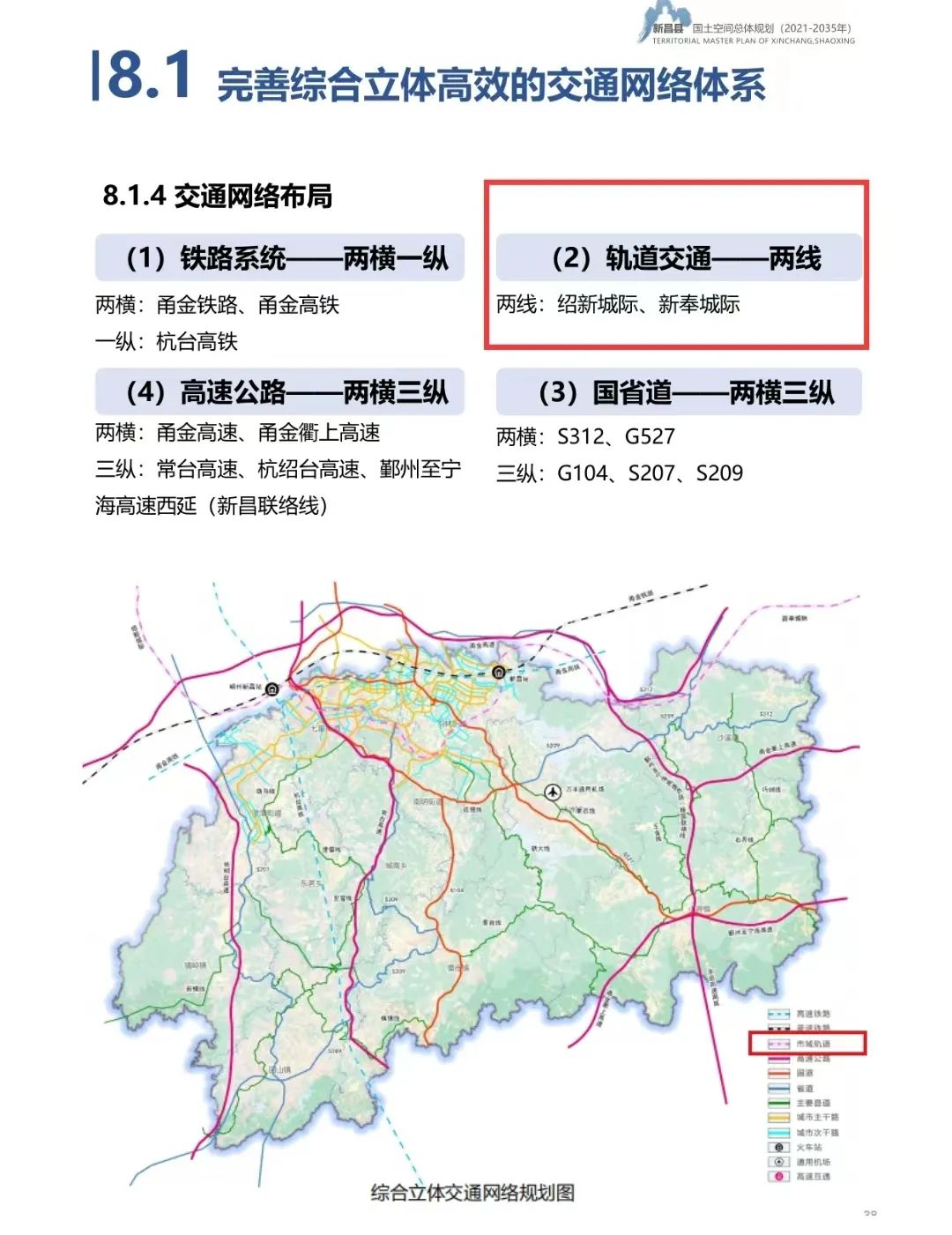 日前,《新昌縣縣級國土空間總體規(guī)劃(2021-2035年)》公示,其中提到新昌即將新建的兩條城際線——紹新城際、新奉城際。根據(jù)官方圖示,新昌境內(nèi),紹新城際線,自嵊州方向延伸,經(jīng)嵊州新昌站,后由西向東橫