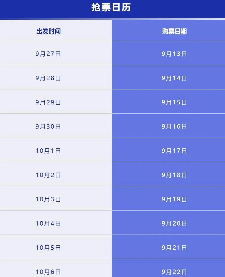 今年中秋節(jié)、國慶節(jié)假期9月29日至10月6日連放8天節(jié)前不調(diào)休9月15日(本周五)開售中秋節(jié)(9月29日)火車票提醒大家提前做好購票準(zhǔn)備有出行計劃的小伙伴可以準(zhǔn)備起來啦~對照下面這份預(yù)售時刻表提前定好