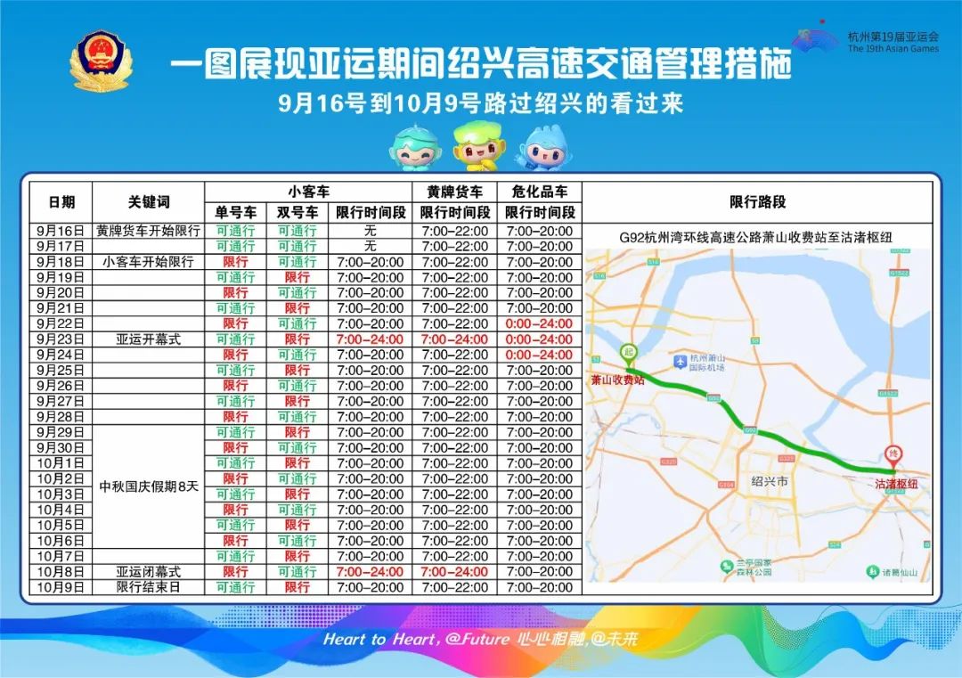 為緩解中秋、國慶假期帶來的大流量壓力,確保安全、順暢、有序的道路交通環(huán)境,浙江公安交通管理部門將在亞運(yùn)會期間對G25長深高速南莊兜收費(fèi)站至武康樞紐、G92杭州灣環(huán)線高速蕭山收費(fèi)站至沽渚樞紐、S2滬杭高