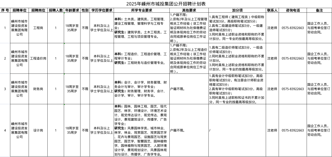 2025年度城投集團(tuán)招聘啟動(dòng)啦,本次計(jì)劃招聘工程崗、工程造價(jià)崗、財(cái)務(wù)崗、設(shè)計(jì)崗各1人,共計(jì)4人,具體崗位要求詳見(jiàn)下圖:關(guān)鍵信息快碼住:報(bào)名時(shí)間:2025年12月15日上午9:00-11:30下午2:3