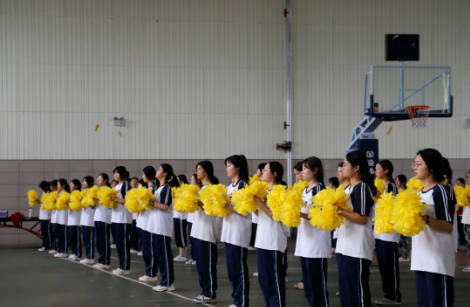 紹興市十運(yùn)會(huì)開幕式上,有一群女孩子格外引人注目:她們身著綠衣白裙,頭上別著可愛的發(fā)夾,手捧黃色花球,自信盎然地出現(xiàn)在舞臺(tái)中央——她們就是本次開幕式的標(biāo)桿隊(duì)員,來自我校的150位女孩子。8月底臨近開學(xué)時(shí)