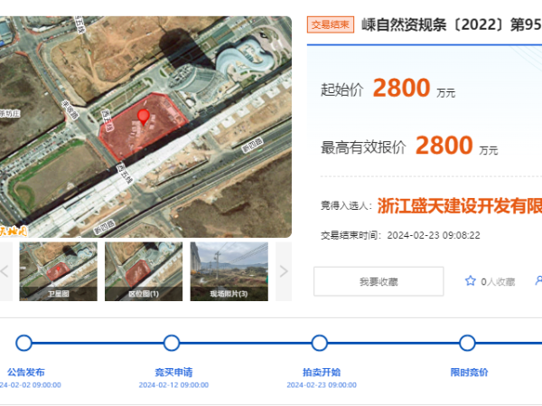 就在今天三江街道站前南路南側(cè)商業(yè)地塊成功出讓由浙江盛天建設(shè)開(kāi)發(fā)有限公司以3200萬(wàn)元的成交總價(jià)競(jìng)得溢價(jià)率0.00%而三江街道茶坊路東側(cè)的商業(yè)地塊,則無(wú)人報(bào)價(jià),未成交。嵊自然資規(guī)條〔2022〕第96號(hào)衛(wèi)