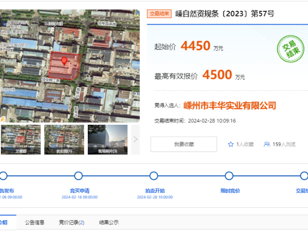 嵊州市領(lǐng)帶園區(qū)仙湖路與領(lǐng)帶園三路交叉口商業(yè)地塊、嵊州市剡湖街道張墅水庫(kù)北側(cè)商業(yè)地塊2宗地塊今日開(kāi)拍。01嵊自然資規(guī)條〔2023〕第57號(hào)嵊州市領(lǐng)帶園區(qū)仙湖路與領(lǐng)帶園三路交叉口商業(yè)地塊最終由嵊州市豐華實(shí)