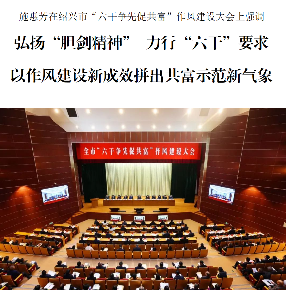 2月5日下午,紹興市“六干爭(zhēng)先促共富”作風(fēng)建設(shè)大會(huì)召開(kāi)。紹興市委書(shū)記施惠芳在會(huì)上強(qiáng)調(diào),要深入學(xué)習(xí)貫徹黨的二十屆三中全會(huì)精神和習(xí)近平總書(shū)記考察浙江重要講話、考察紹興重要指示精神,全面貫徹落實(shí)全省新春第一