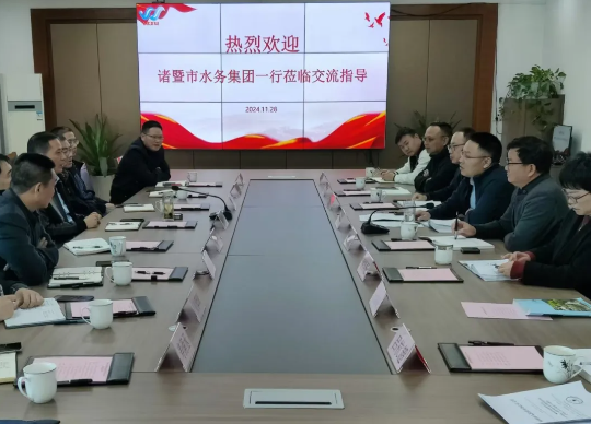 11月28日,諸暨市水務(wù)集團(tuán)一行來嵊考察交流排水設(shè)施建設(shè)運(yùn)營方面經(jīng)驗(yàn)做法,在水務(wù)集團(tuán)二樓會議室召開調(diào)研座談會。公司領(lǐng)導(dǎo)費(fèi)樂民介紹“污水零直排”相關(guān)設(shè)施建設(shè)經(jīng)驗(yàn)。黨委副書記、總經(jīng)理俞程凱介紹基本情況,公