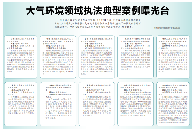 為全力打好空氣質(zhì)量改善攻堅(jiān)戰(zhàn),8月12日以來,紹興全市各地各執(zhí)法機(jī)構(gòu)錨定目標(biāo),主動(dòng)作為,積極開展大氣環(huán)境質(zhì)量綜合執(zhí)法月行動(dòng),查處了一批突出涉氣環(huán)境違法案件。為強(qiáng)化警示震懾,發(fā)揮典型案例的示范引領(lǐng)作用,