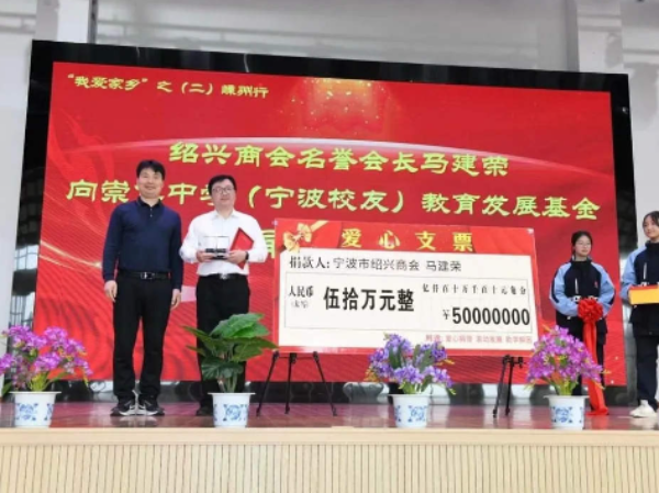 日前,寧波市紹興商會(huì)名譽(yù)會(huì)長(zhǎng)馬建榮先生,向崇仁中學(xué)(寧波校友)教育發(fā)展基金慷慨捐款50萬(wàn)元。在莊嚴(yán)而溫馨的儀式上,校友們紛紛向在讀的學(xué)子們送上殷切的期望。他們希望這些年輕的學(xué)子們能夠珍惜時(shí)光,努力學(xué)習(xí)
