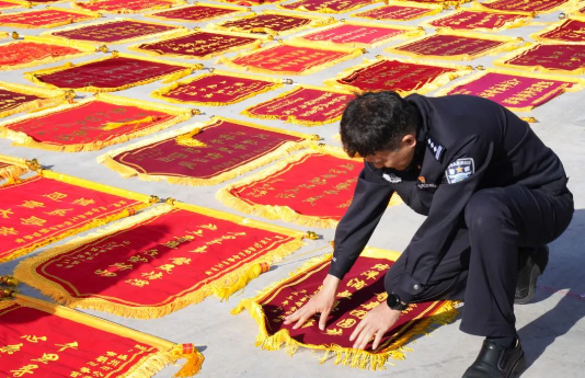 嵊州市公安局“和合”尋親工作室迎來搬遷民警與志愿者們把收到的錦旗搬到院子里晾曬300多面錦旗鋪滿了派出所大院網(wǎng)友:這哪是錦旗是彌補尋親家庭傷痛的巨型創(chuàng)可貼!↓↓↓嵊州市公安局“和合”尋親工作室自202