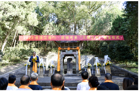 10月29日上午,由浙江蘭亭王羲之書法藝術(shù)研究院舉辦的書法江南行·追根書圣“王羲之杯”朝圣活動在“書圣”王羲之歸隱地金庭觀舉行。原浙江省人大常委會社會建設(shè)工作委員會主任、原紹興市委書記錢建民宣布活動開