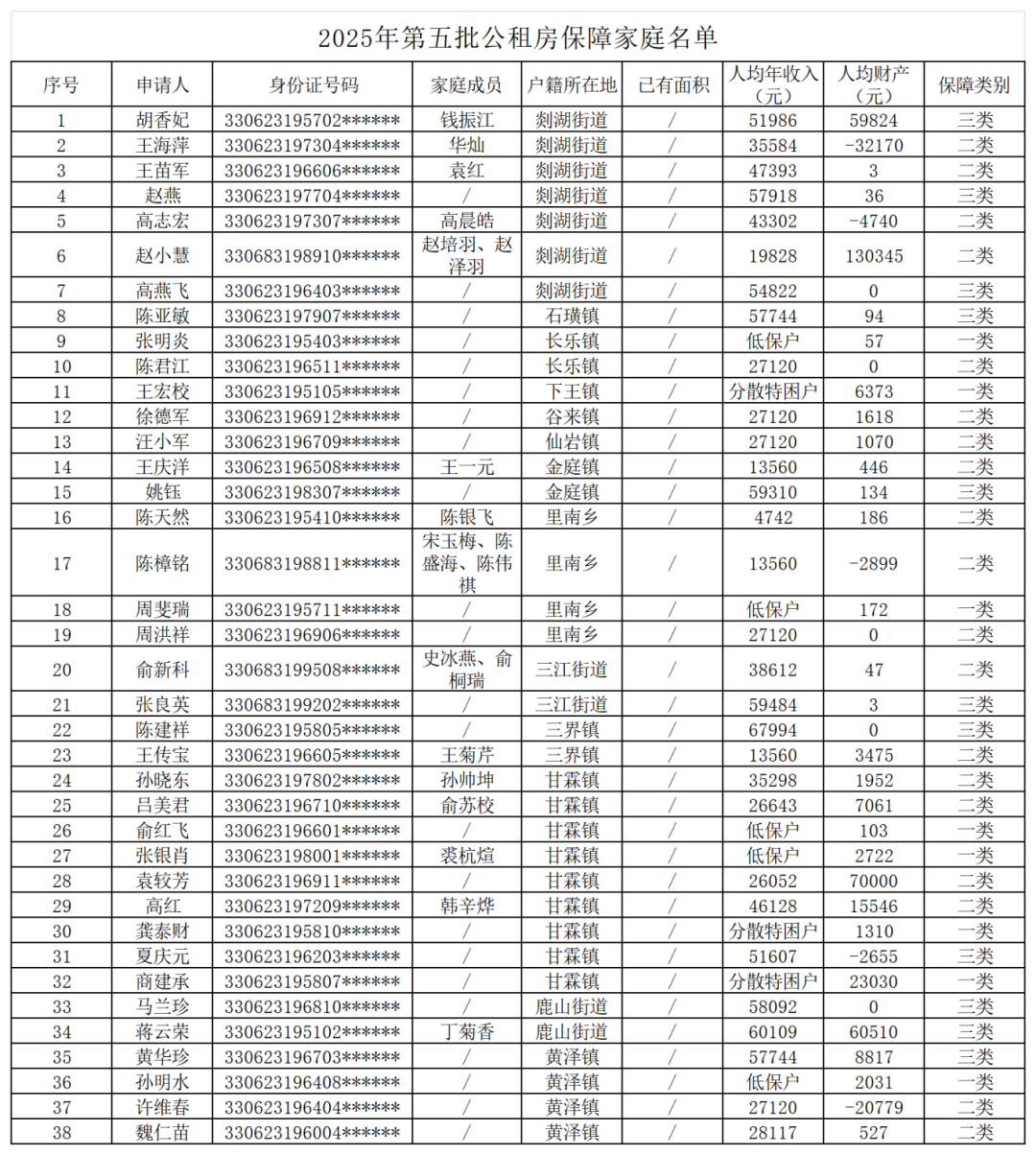 正在閱讀:速看!嵊州2025年第五批公租房保障家庭名單公布