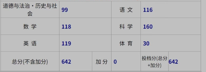 上城區(qū)的杭州中學(xué)、采荷實驗學(xué)校、杭州市景荷中學(xué)的群里,也分別曬出了640分的成績單。不少高分考生的科學(xué)拿到滿分,社會也有100分、99分等。家長群里、網(wǎng)絡(luò)上,不少家長曬出分數(shù)。