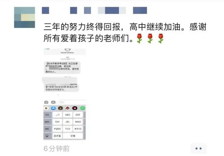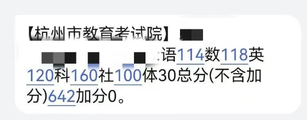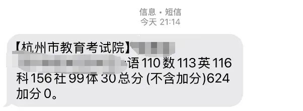剛剛,9點多,杭州多位家長陸續(xù)收到短信,中考成績發(fā)布了。